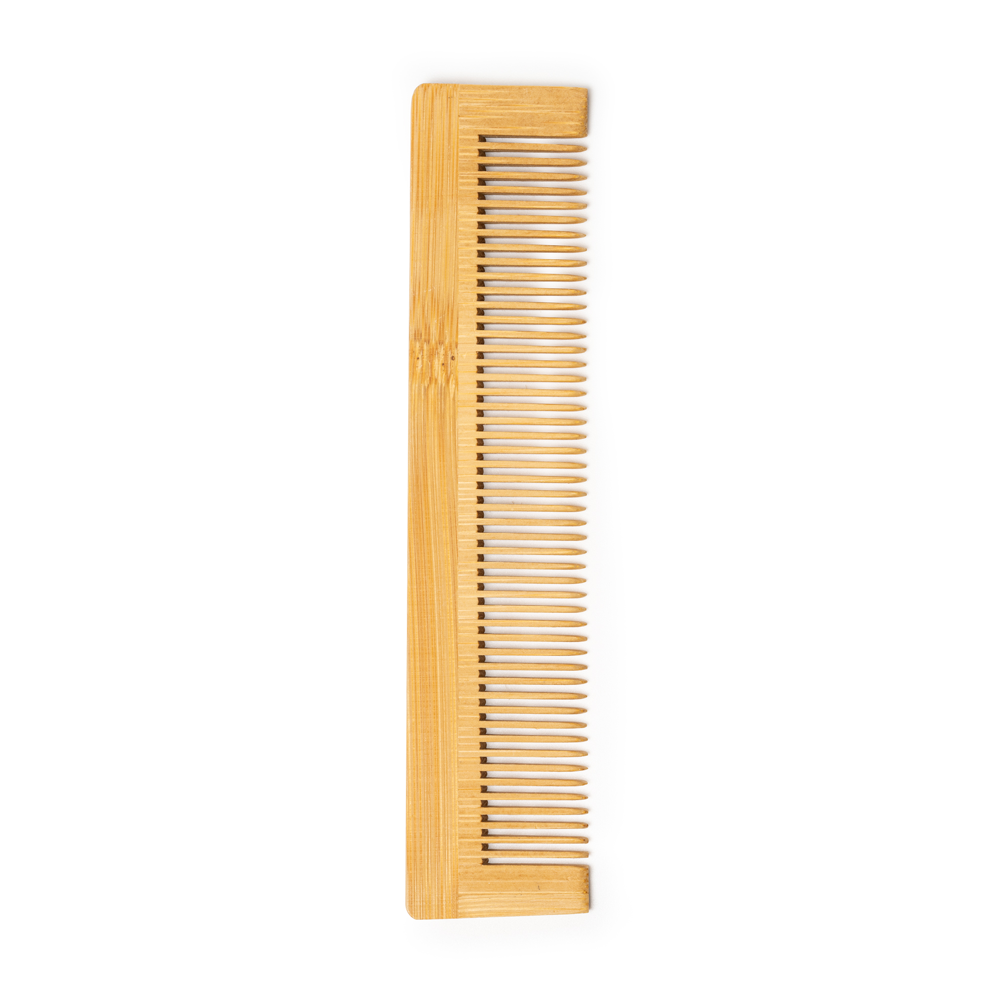 Peine de bambú natural, ligero y sostenible. Ideal para el uso diario o como detalle ecológico promocional. Su tamaño compacto permite llevarlo cómodamente en el bolso o neceser.