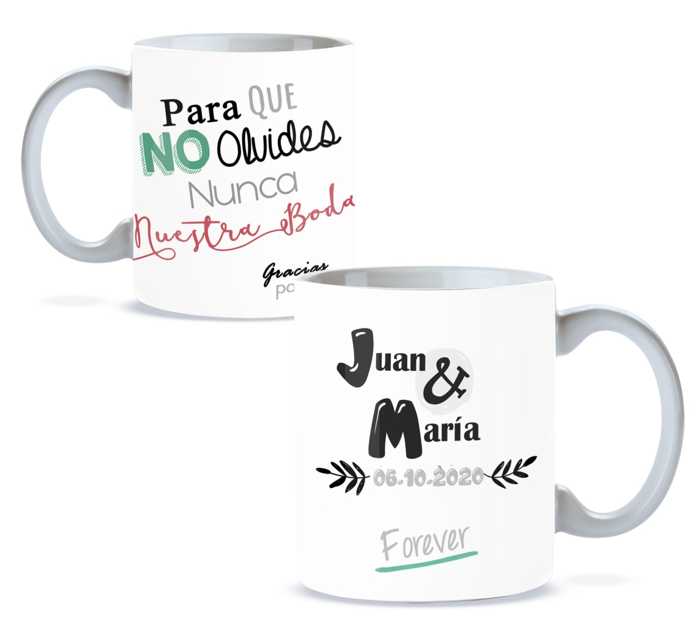 Celebra tu boda con una taza personalizada que recordará siempre ese día tan especial. Un detalle único para regalar a invitados o guardar como recuerdo eterno.
